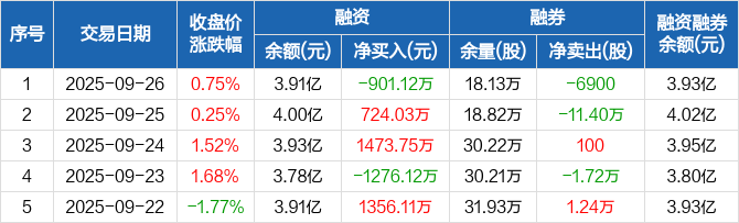 江苏国信:融资净偿还901.12万元,融资余额3.91亿元(09-26)