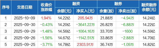 露笑科技:融资净买入205.94万元,融资余额14.22亿元(10-09)