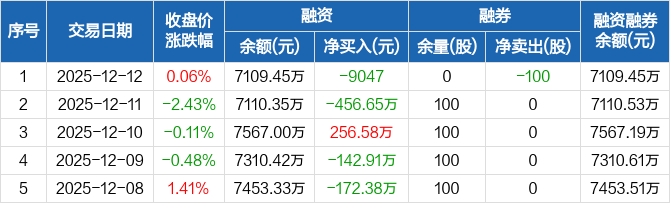 亚玛顿:融资净偿还9047元,融资余额7109.45万元(12-12)