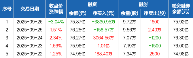 光启技术:融资净偿还3830.95万元,融资余额75.87亿元(09-26)