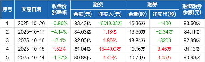 光启技术:融资净偿还6019.03万元,融资余额83.43亿元(10-20)