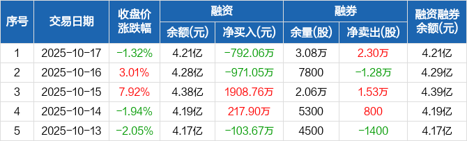 金达威:融资净偿还792.06万元,融资余额4.21亿元(10-17)