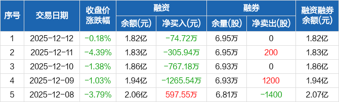 德尔未来:连续4日融资净偿还累计2413.38万元(12-12)