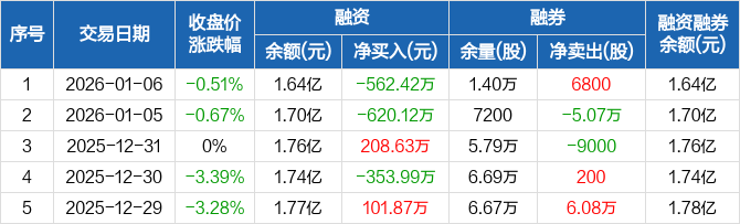 德尔未来:融资净偿还562.42万元,融资余额1.64亿元(01-06)