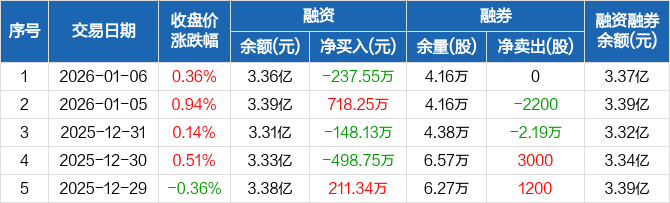 安洁科技:融资净偿还237.55万元,融资余额3.36亿元(01-06)