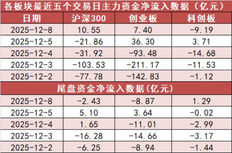 沪深300今日主力资金净流入10.55亿元,创业板净流入7.4亿元,科创板净流出9.19亿元。