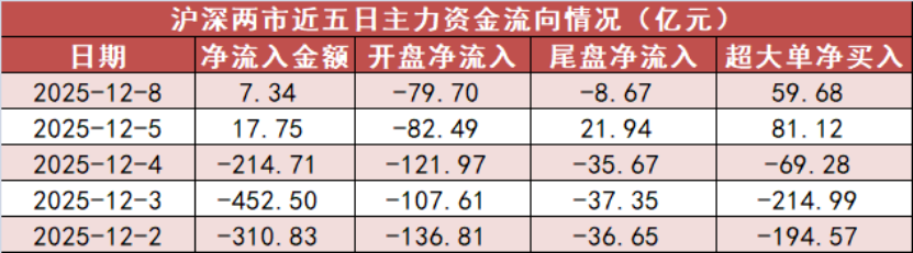 今日A股市场主力资金开盘净流出79.7亿元,尾盘净流出8.67亿元,A股市场全天主力资金净流入7.34亿元。