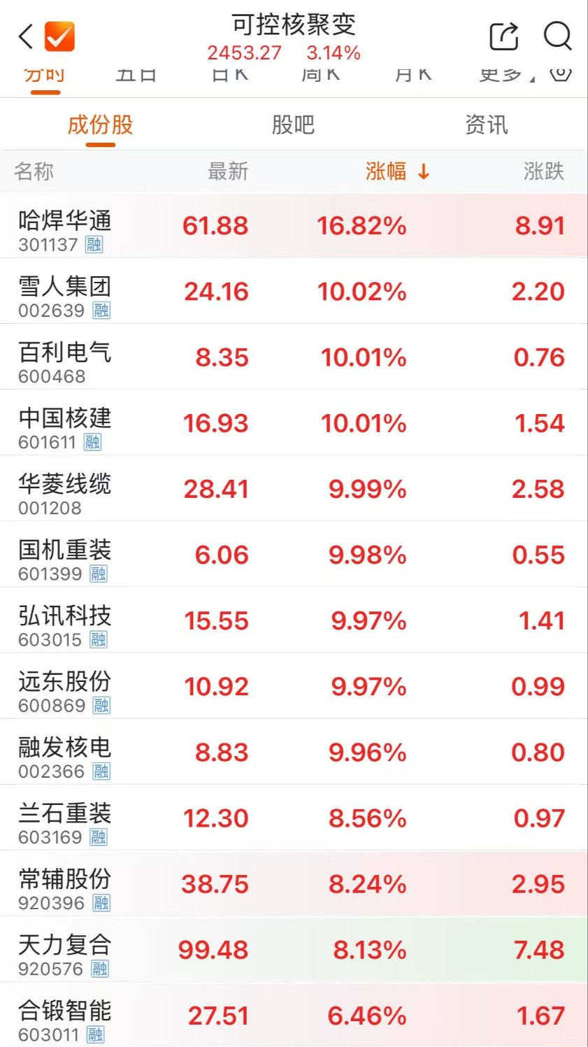 板块异动 | 可控核聚变多股涨停 板块热度持续升温