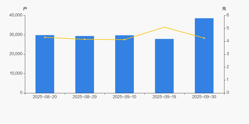 2025年8月20日至今,公司股东户数显著增长,区间涨幅为29.15%。2025年8月20日至2025年9月30日区间股价下降1.39%。