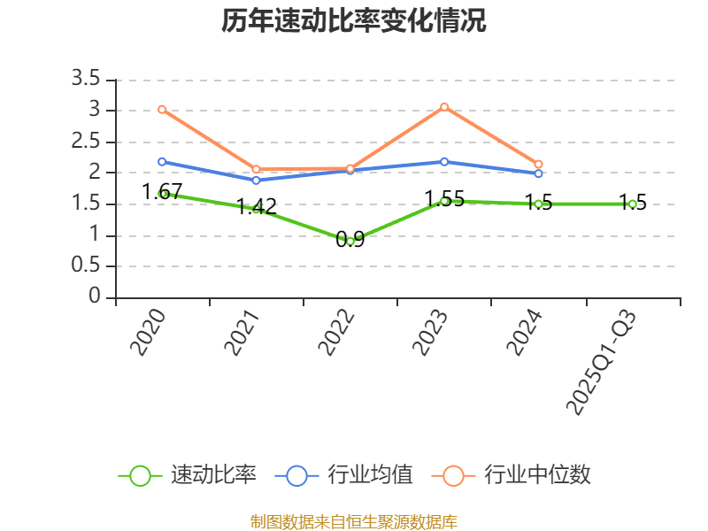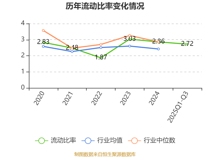 2025年前三季度,公司流动比率为2.72,速动比率为1.5。