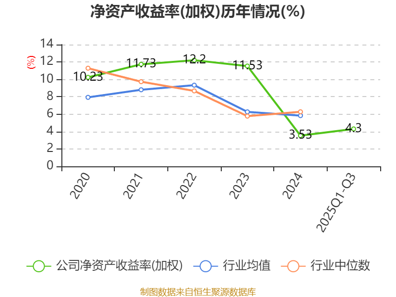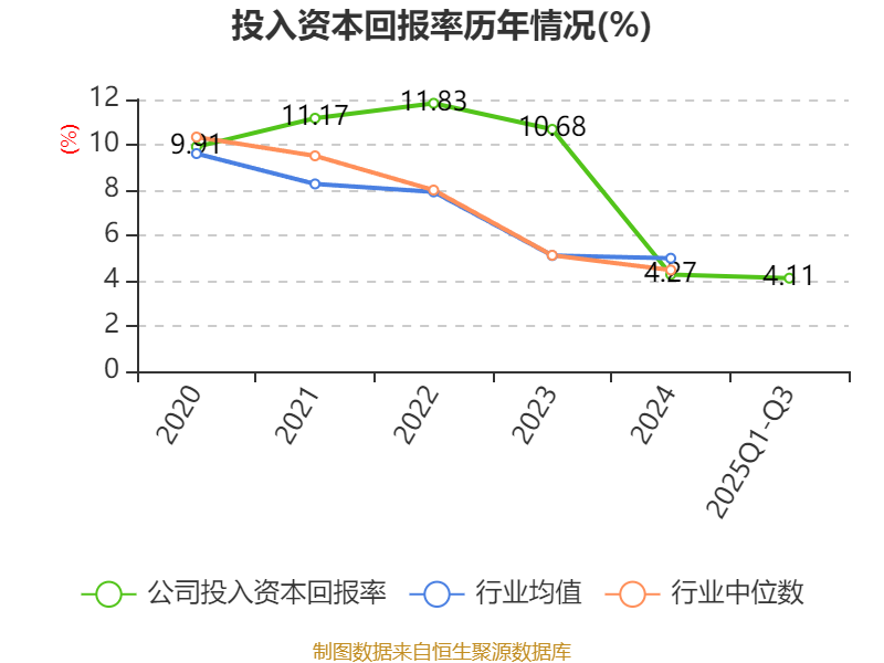 盈利能力方面, 2025年前三季度公司加权平均净资产收益率为4.3%,同比上升0.09个百分点。公司2025年前三季度投入资本回报率为4.11%,较上年同期下降0.22个百分点。