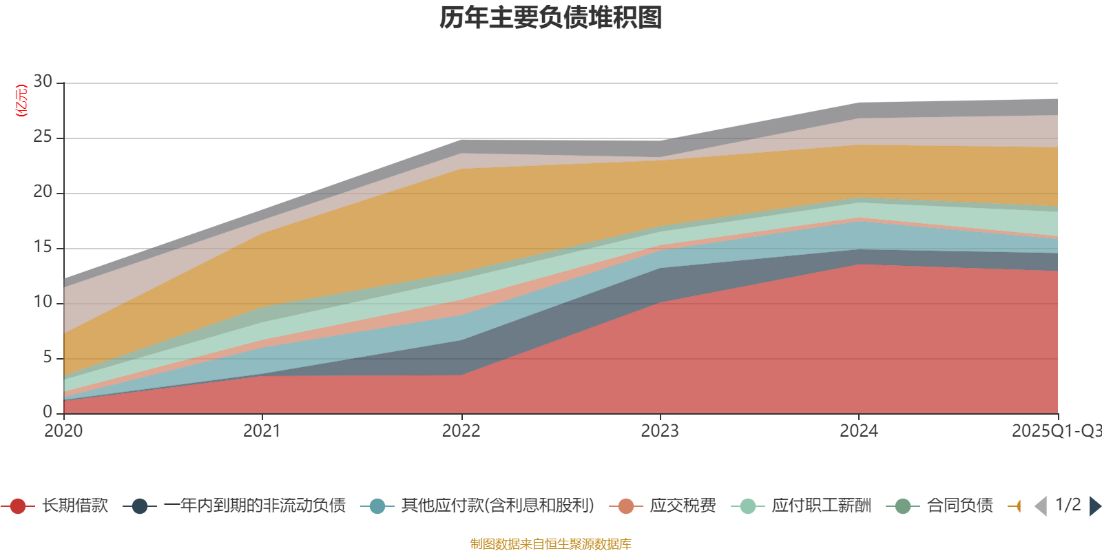 负债重大变化方面,截至2025年三季度末,公司其他应付款(含利息和股利)较上年末减少49.29%,占公司总资产比重下降1.21个百分点;长期借款较上年末减少4.54%,占公司总资产比重下降0.87个百分点;应付职工薪酬较上年末增加65.55%,占公司总资产比重上升0.77个百分点;应付票据及应付账款较上年末增加12.54%,占公司总资产比重上升0.44个百分点。
