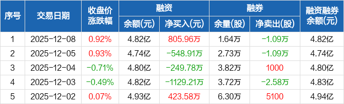 万润股份:融资净买入805.96万元,融资余额4.82亿元(12-08)