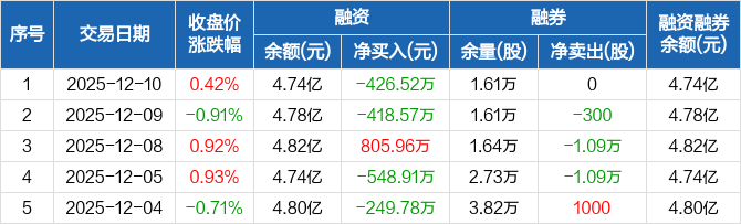 万润股份:融资净偿还426.52万元,融资余额4.74亿元(12-10)
