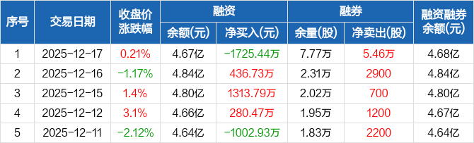 万润股份:融资净偿还1725.44万元,融资余额4.67亿元(12-17)