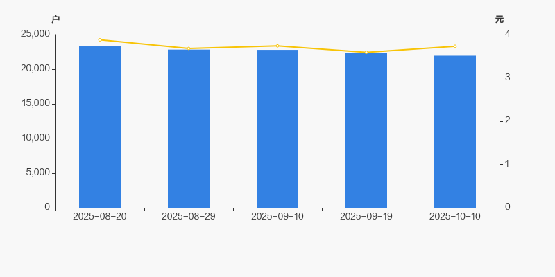 2025年8月20日至今,公司股东户数有所下降,区间跌幅为5.78%。2025年8月20日至2025年10月10日区间股价下降3.87%。