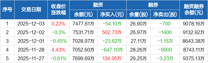 海思科:融资净偿还54.1万元,融资余额7477.61万元(12-03)