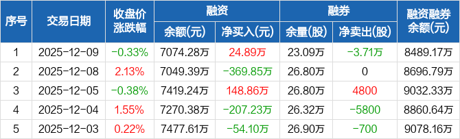 海思科:融资净买入24.89万元,融资余额7074.28万元(12-09)