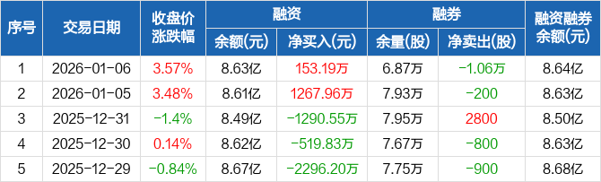 万润科技:融资净买入153.19万元,融资余额8.63亿元(01-06)