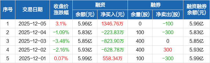 中科金财:融资净买入1346.76万元,融资余额5.96亿元(12-05)