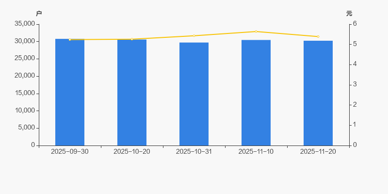 截至2025年11月20日,公司最新总股本为7.88亿股,其中流通股本为5.01亿股。户均持有流通股数量由上期的1.64万股上升至1.66万股,户均流通市值8.92万元。