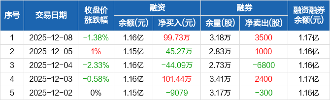 东江环保:融资净买入99.73万元,融资余额1.16亿元(12-08)