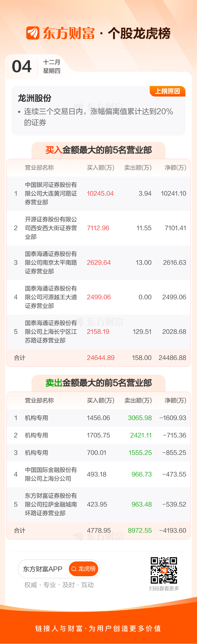 交易所2025年12月4日公布的交易公开信息显示,龙洲股份因成为连续三个交易日内,涨幅偏离值累计达到20%的证券上榜。龙洲股份当日收报7.16元,涨跌幅9.98%,换手率8.10%,成交额3.22亿。异常期间12月3日至12月4日,期间涨幅20.95%,累计偏离值21.91%,区间成交额10.45亿。