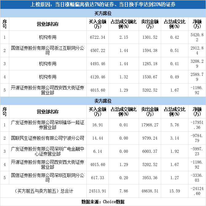 多主力现身龙虎榜,龙洲股份涨停(12-10)