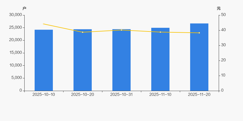 自2025年10月10日以来,公司股东户数连续4期上涨,截至目前增幅为10.30%。2025年10月10日至2025年11月20日区间股价下降13.25%。