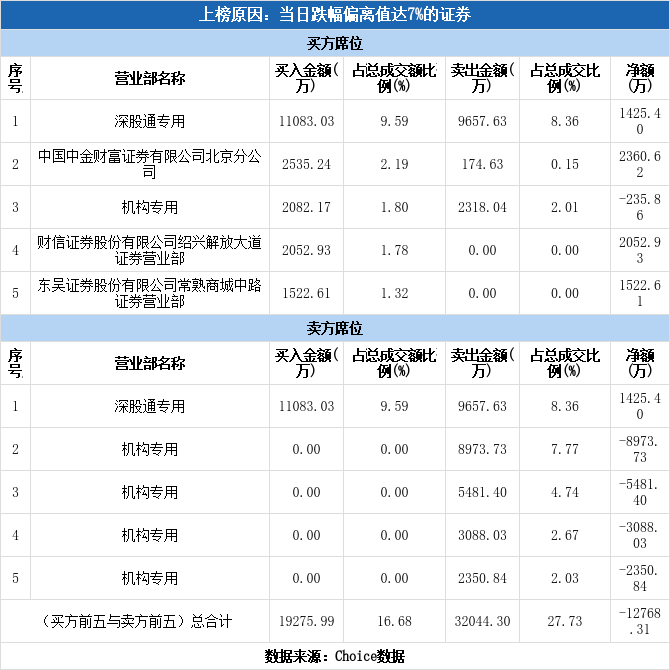 龙虎榜数据显示,今日共5个机构席位出现在龙虎榜单上,分别位列买三、卖二、卖三、卖四、卖五,合计净卖出2.01亿元,占龙虎榜净卖额的157.65%。除此之外还有红相股份、雪人集团、长光华芯等42只个股榜单上出现了机构的身影,其中26家呈现机构净买入,获净买入最多的是红相股份,净买额为1.96亿元;16家呈现机构净卖出,其中遭净卖出最高的为太阳电缆,净卖额为1.07亿元。