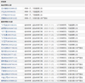 12月1日盘前停复牌汇总