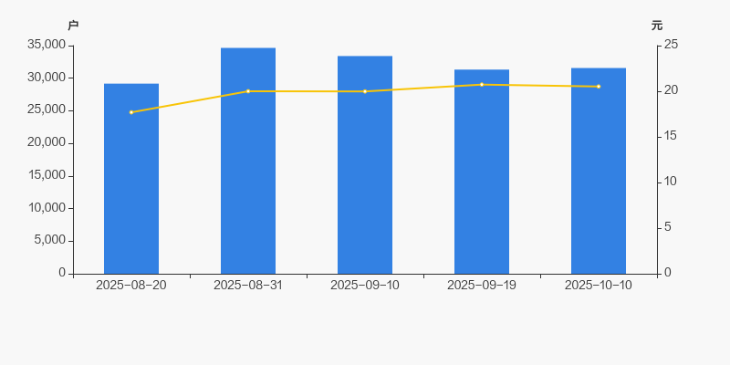 2025年8月20日至今,公司股东户数有所增长,区间涨幅为8.20%。2025年8月20日至2025年10月10日区间股价上涨16.00%。