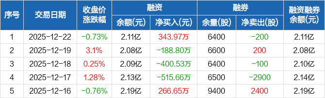 煌上煌:融资净买入343.97万元,融资余额2.11亿元(12-22)