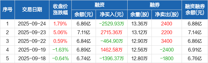 博实股份:融资净偿还2529.93万元,融资余额6.86亿元(09-24)