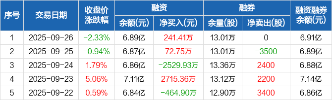 博实股份:融资净买入241.41万元,融资余额6.89亿元(09-26)