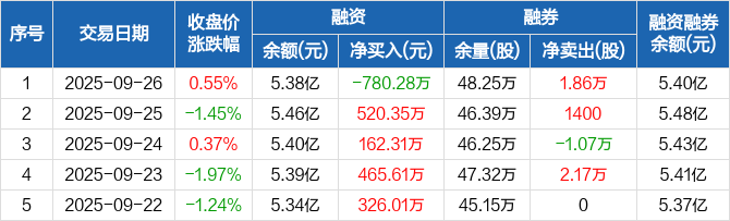 奥瑞金:融资净偿还780.28万元,融资余额5.38亿元(09-26)