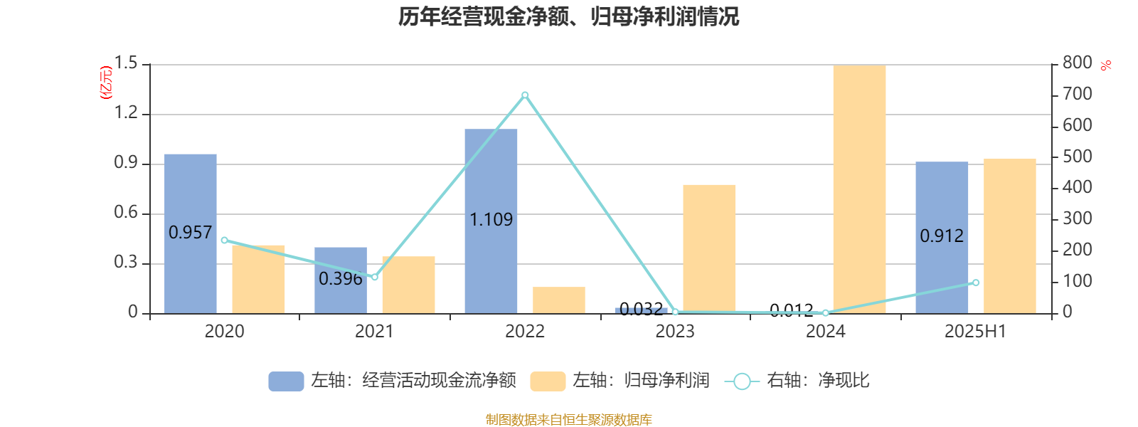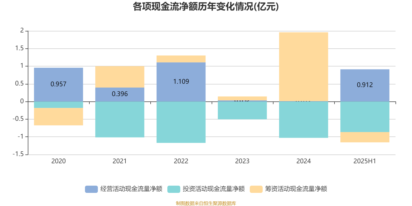 2025年上半年,公司经营活动现金流净额为9118.1万元;筹资活动现金流净额-2905.99万元;投资活动现金流净额-8645.49万元。