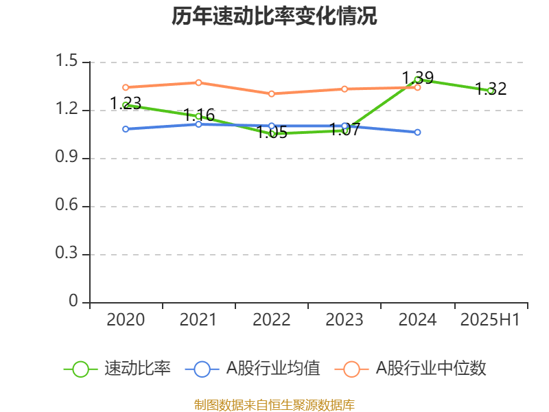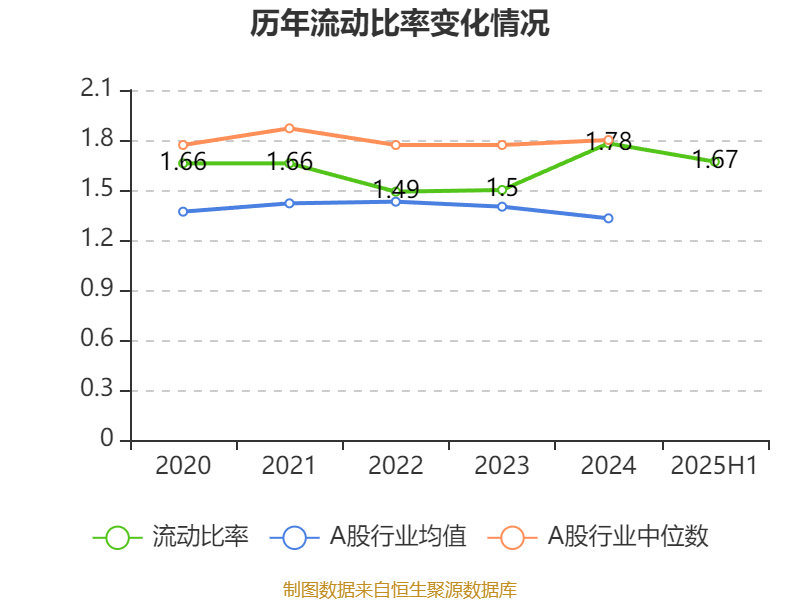 2025年上半年,公司流动比率为1.67,速动比率为1.32。