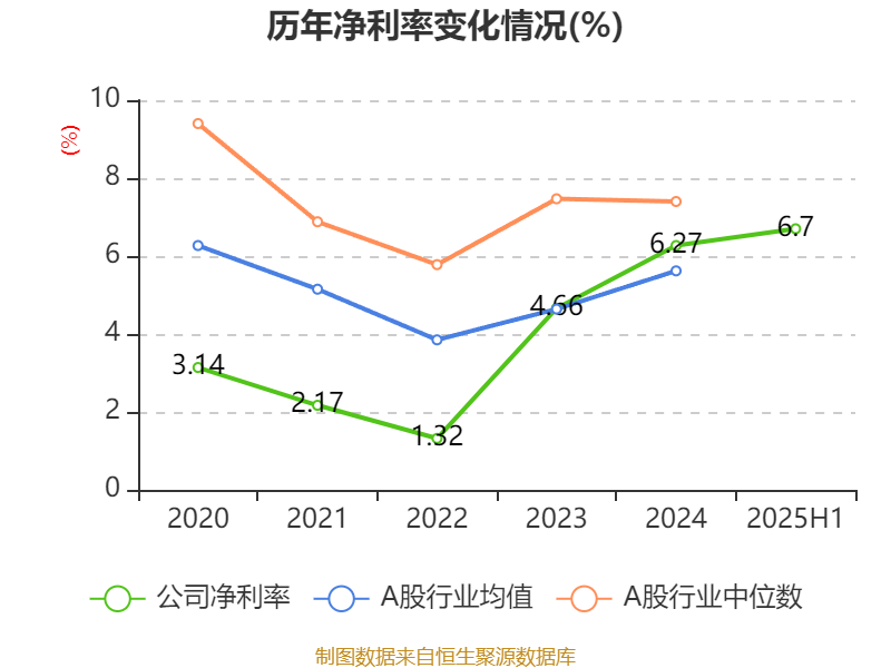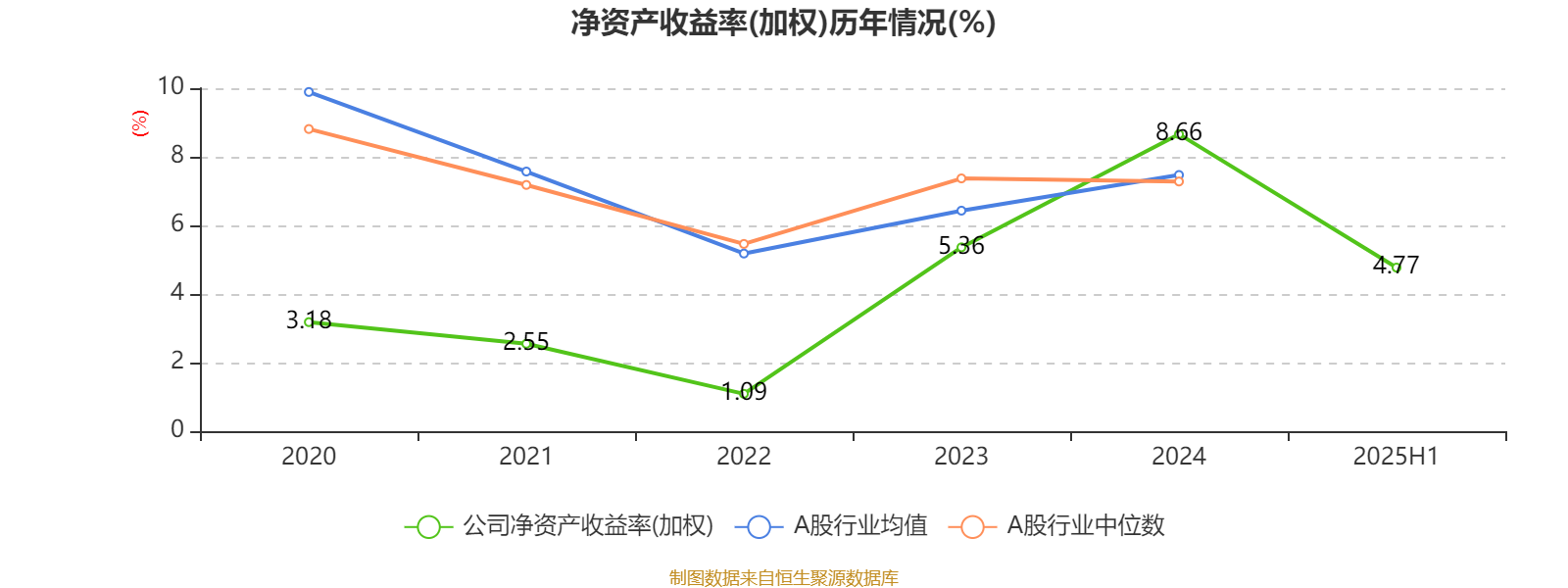 2025年上半年,公司平均净资产收益率为4.77%,较上年同期上升0.79个百分点。