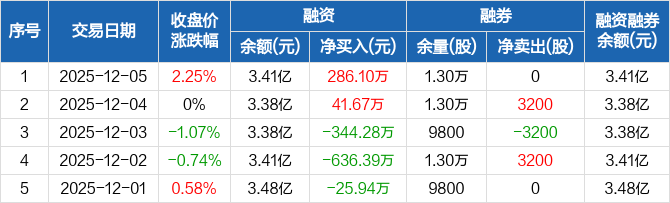 浙江世宝:融资净买入286.1万元,融资余额3.41亿元(12-05)