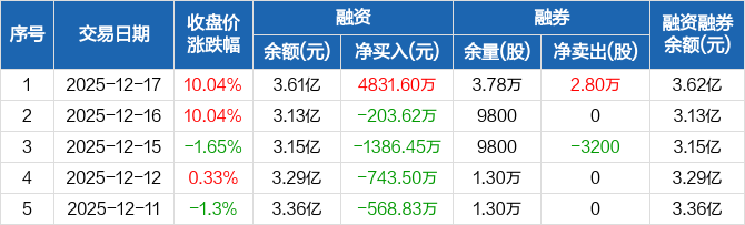 浙江世宝:融资净买入4831.6万元,融资余额3.61亿元(12-17)