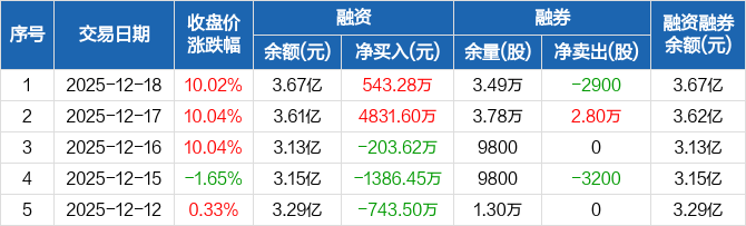 浙江世宝:融资净买入543.28万元,融资余额3.67亿元(12-18)
