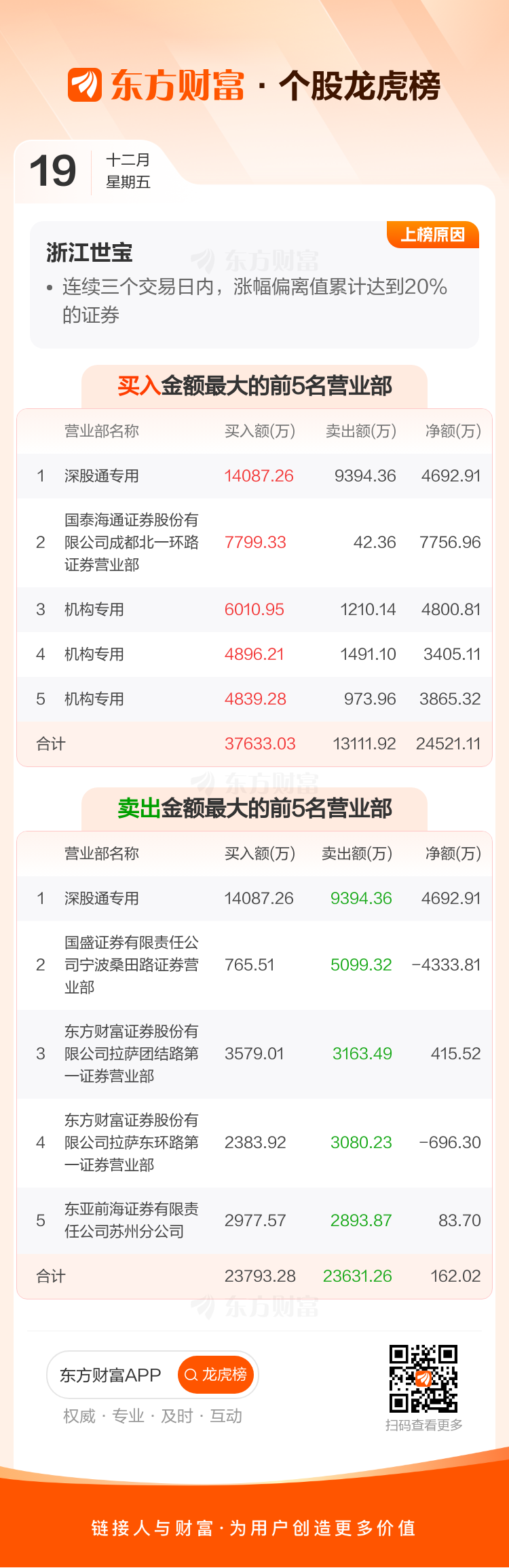 浙江世宝(002703)龙虎榜数据(12-19)