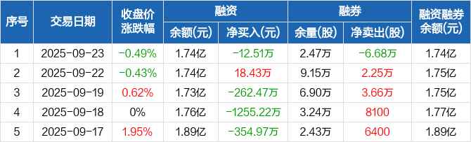 新宝股份:融资净偿还12.51万元,融资余额1.74亿元(09-23)
