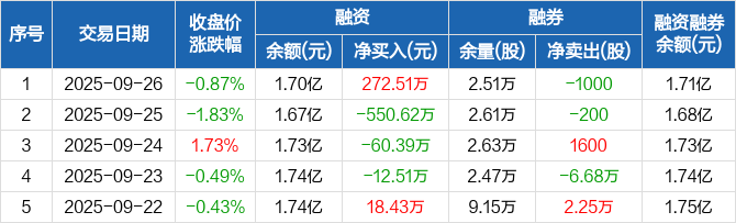 新宝股份:融资净买入272.51万元,融资余额1.7亿元(09-26)