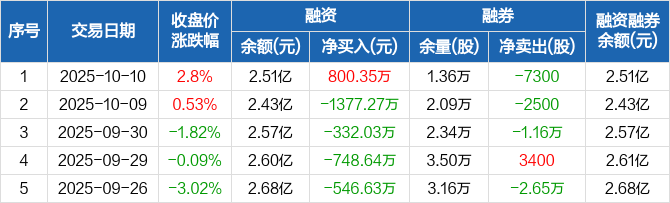 良信股份:融资净买入800.35万元,融资余额2.51亿元(10-10)