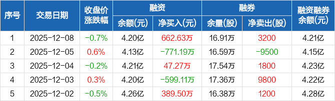 良信股份:融资净买入662.63万元,融资余额4.2亿元(12-08)