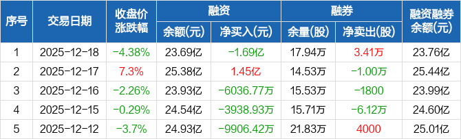 天赐材料:融资净偿还1.69亿元,两市排名第七(12-18)