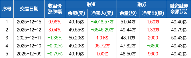 牧原股份:融资净偿还4016.57万元,融资余额49.15亿元(12-15)