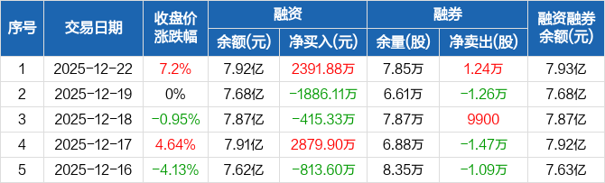 湖南白银:融资净买入2391.88万元,融资余额7.92亿元(12-22)